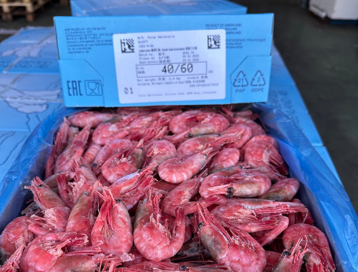 Våra djuphavsfiskade räkor 40/60 är kokta och frysta direkt på båten.